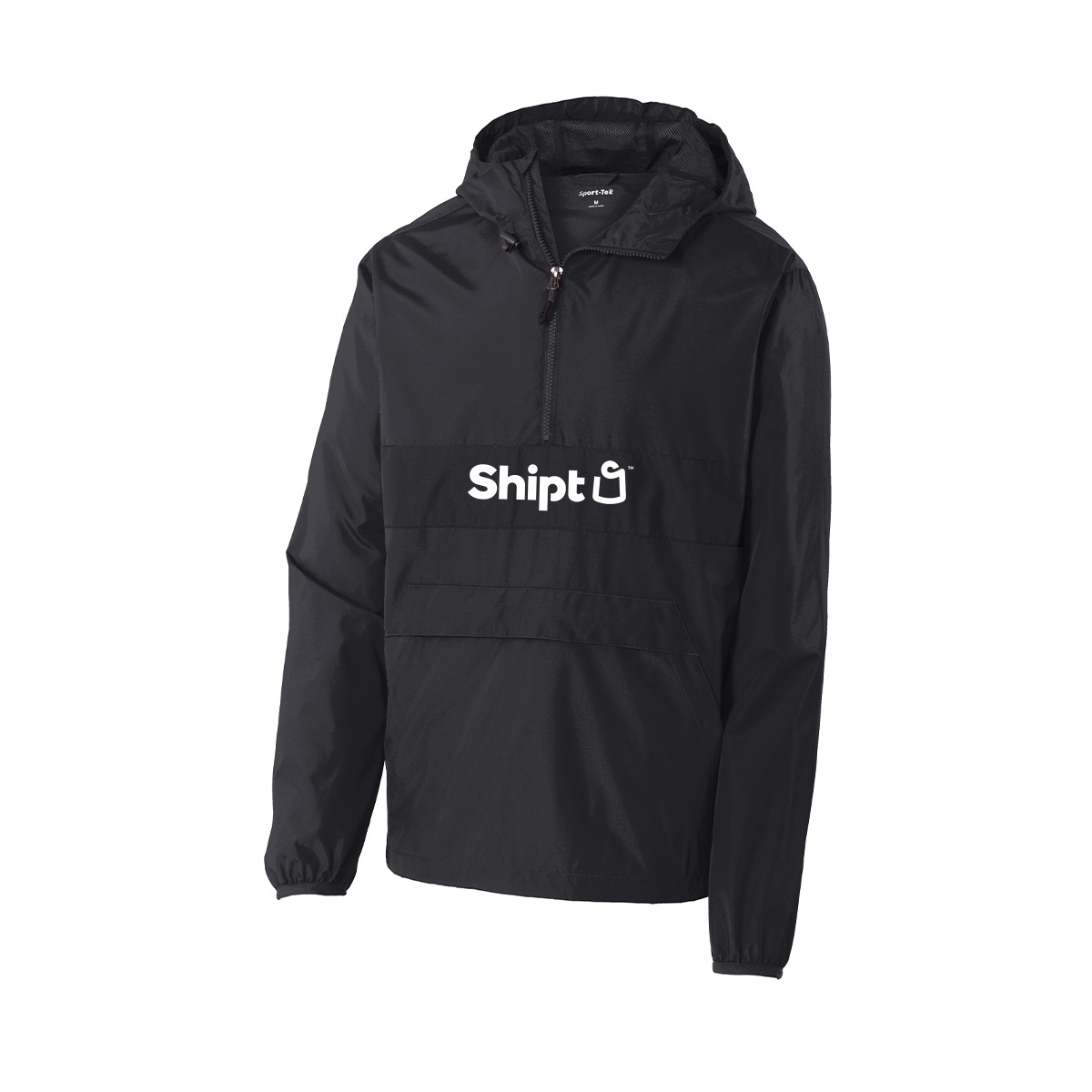 A wind- and water-resistant anorak designed for protection and convenience, featuring a three-panel hood with drawcord, secure zippered pockets, stretch cuff bindings, and a slight drop-tail hem for added coverage.