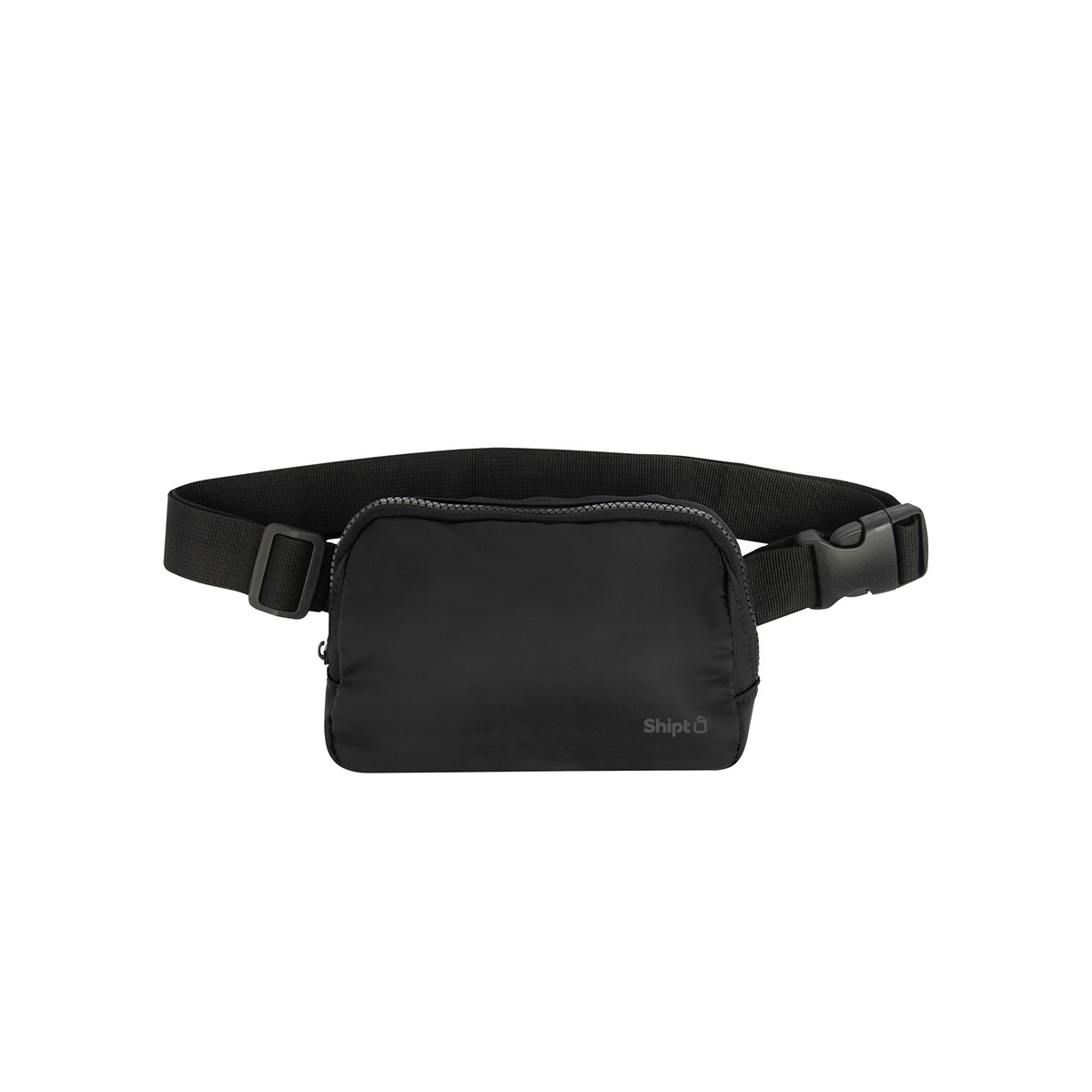 A versatile bag designed to be worn as a fanny pack or chest sling, featuring a zippered main compartment, back pocket, 2" gusset, and adjustable strap for secure, comfortable carry.